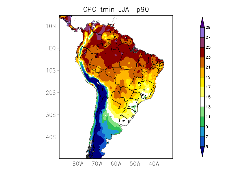 TN90 – Valor do percentil de 90% (ºC)