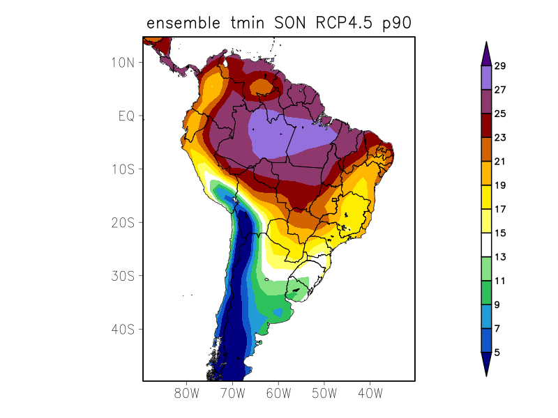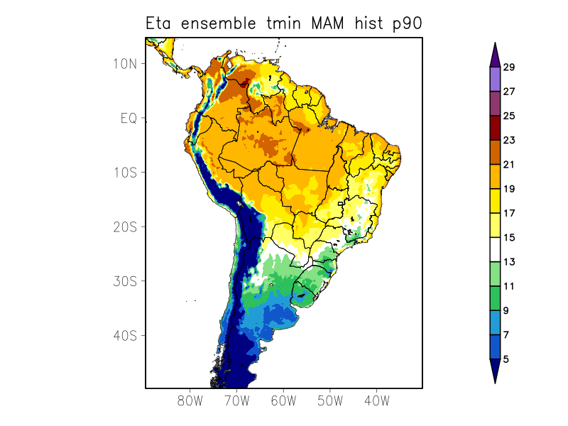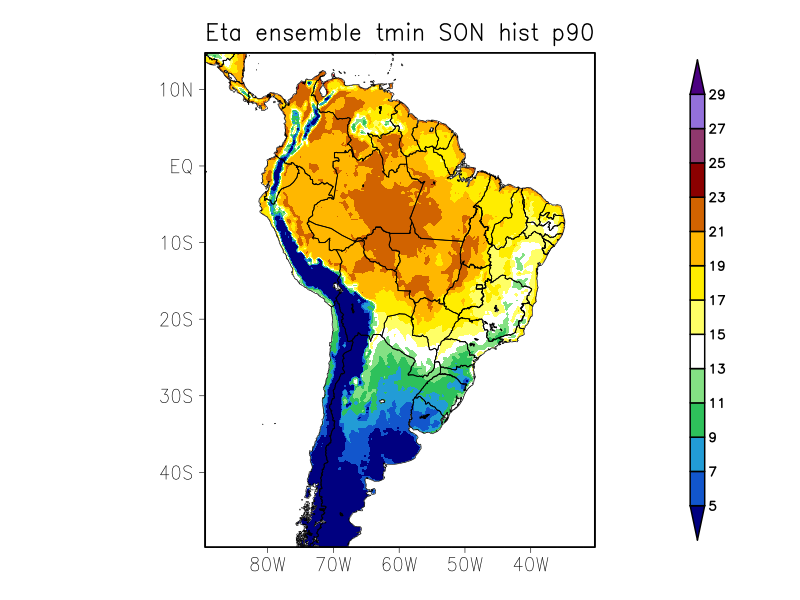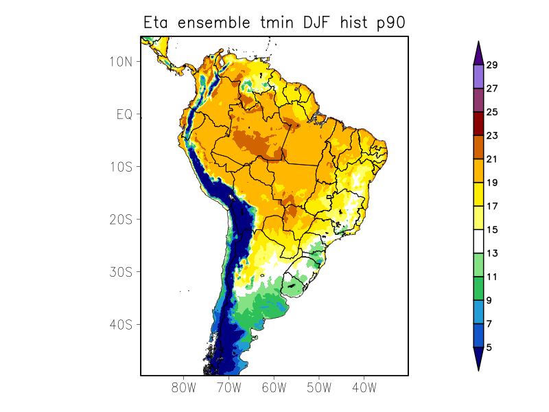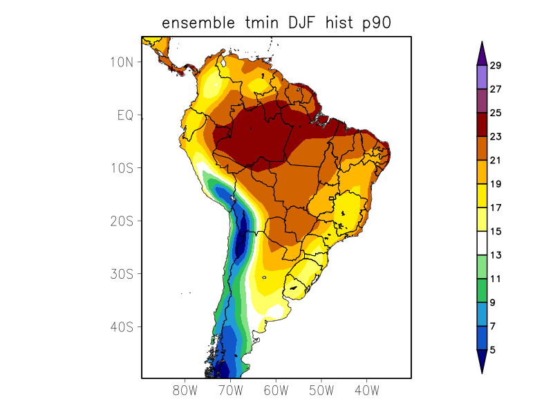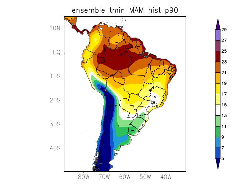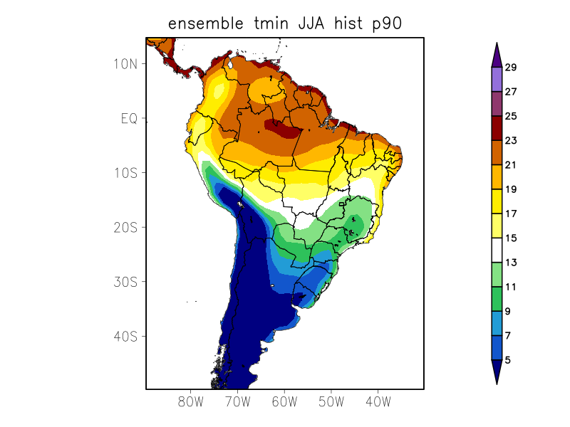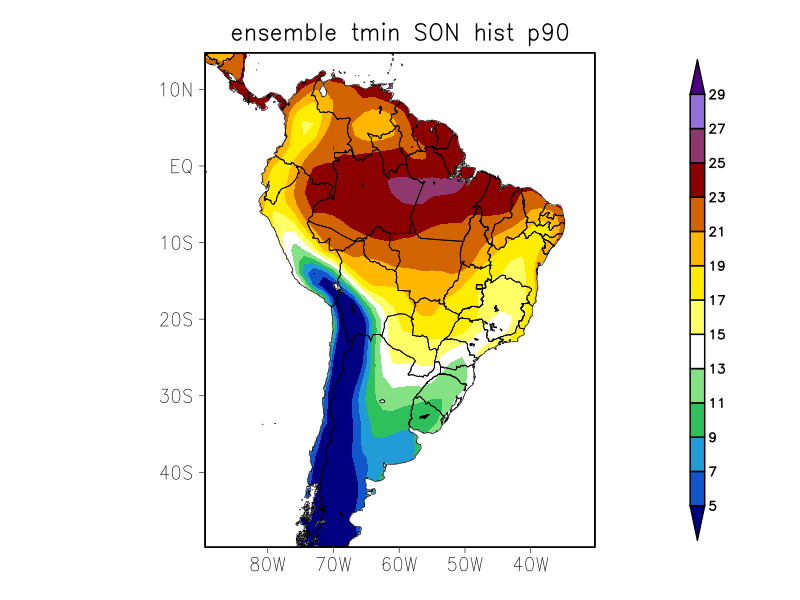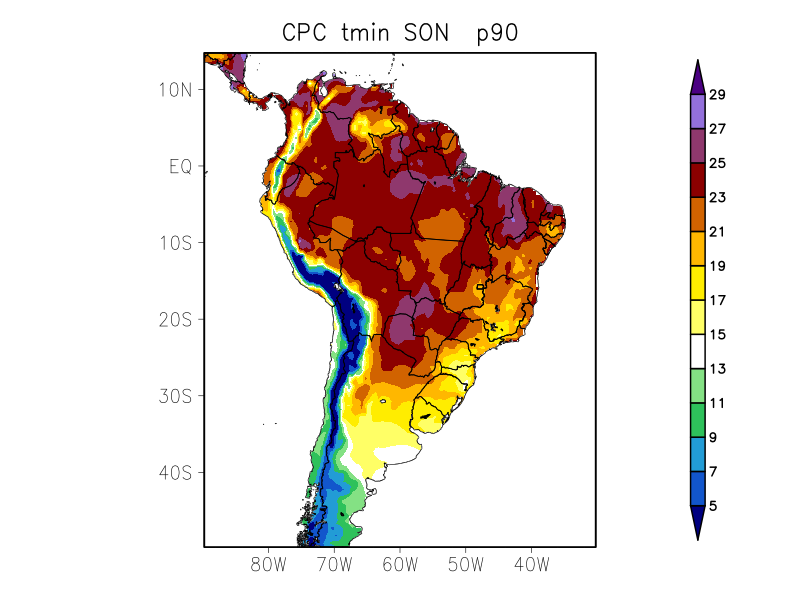 TN90p - Porcentagem de dias com temperatura mínima acima do percentil 90% (%)